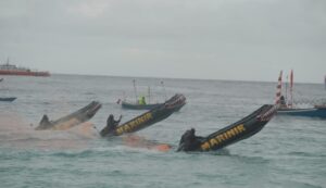 Minut | MMCnews.id ;Dalam rangka pembukaan Likupang Tourism Festival, Prajurit Yonmarhanlan VIII Bitung turut memeriahkan dengan menampilkan Demontrasi dan Atraksi Perahu Karet di Pantai Pal Marinsouw Kec. Likupang Timur Kabupaten Minahasa Utara. Sabtu (30/10/2021)